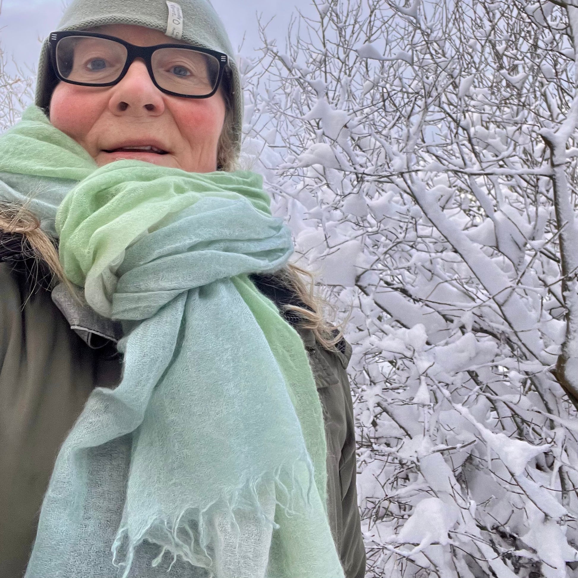 cashmere shawl light blue green fade