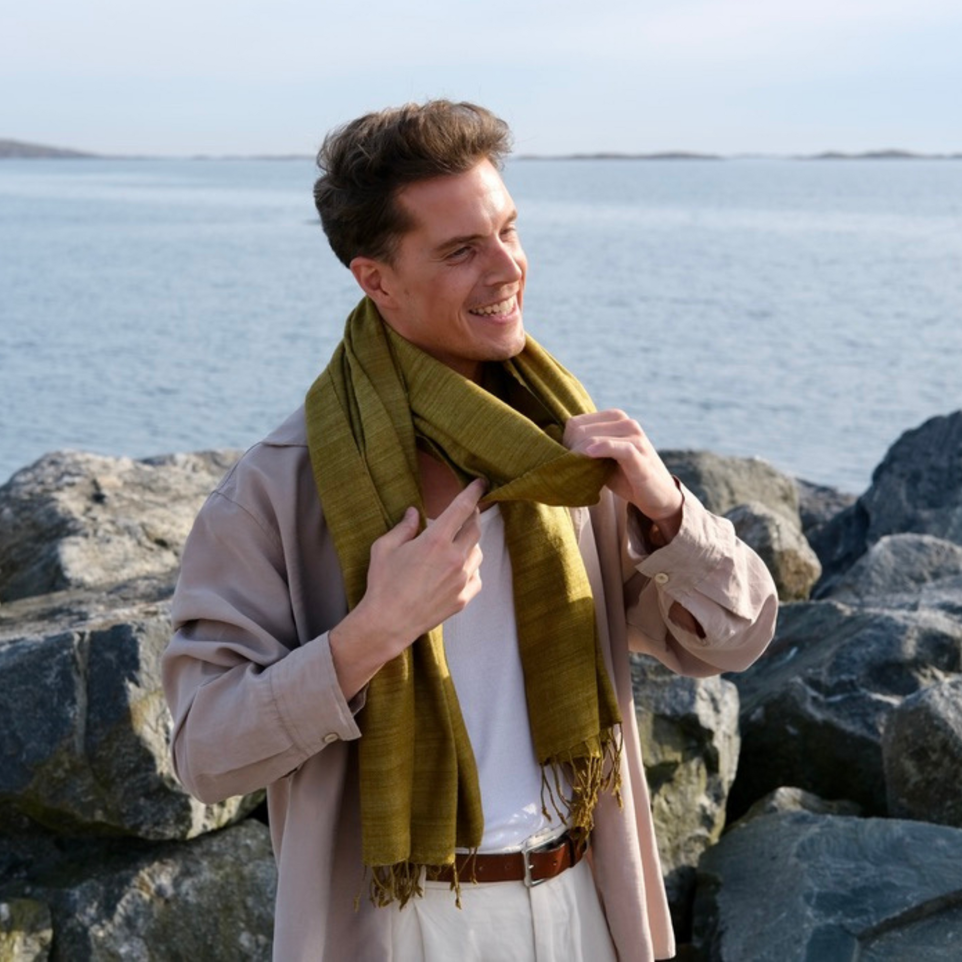 The color is achieved using a blend of turmeric and indigo, resulting in a rich, natural green tone. Each shade is created using small-scale artisan techniques — slight variations in tone are part of what makes every piece unique.