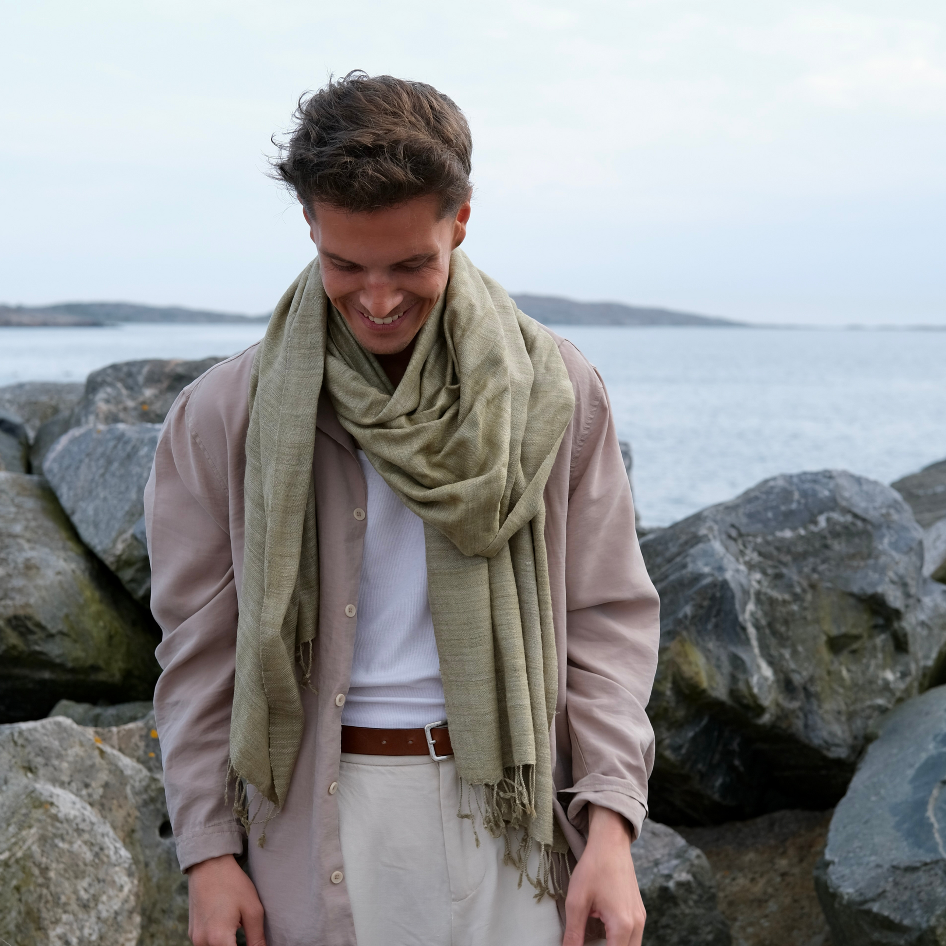 The color comes from onion skin, a gentle dye that creates a warm olive-green tone. Each shade is created using small-scale artisan techniques — slight variations in tone are part of what makes every piece unique.
