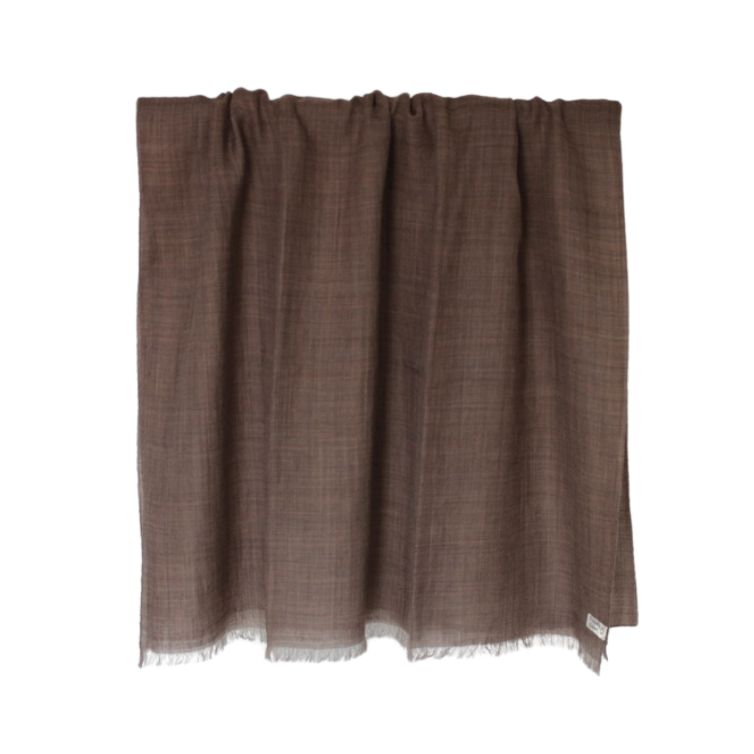The fibres are among the softest in the world — just 17.5 microns or less — so fine that only four shawls can be woven in a day. Left undyed, the dark brown tone reflects the natural beauty of the wool itself — grounding, earthy, and quietly elegant.