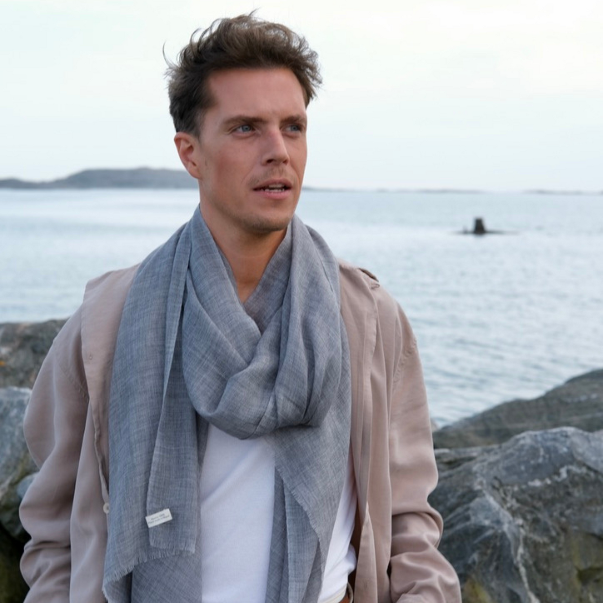 The fibres are among the softest in the world — just 17.5 microns or less — so fine that only four shawls can be woven in a day. Left undyed, the natural grey shade is timeless, versatile, and gently sophisticated.